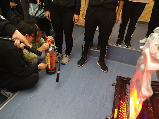 通过两个幽默短片,马老师带领大家学习了消防器材及其标识和用法,教会我们灭火器“小火不怕,提拔握压”;消火栓“大火来了沉住气,一甩两接拧到底”的用法,并让同学们动手操作模拟消防器材,大家都积极踊跃上台尝试使用模拟消防器材。