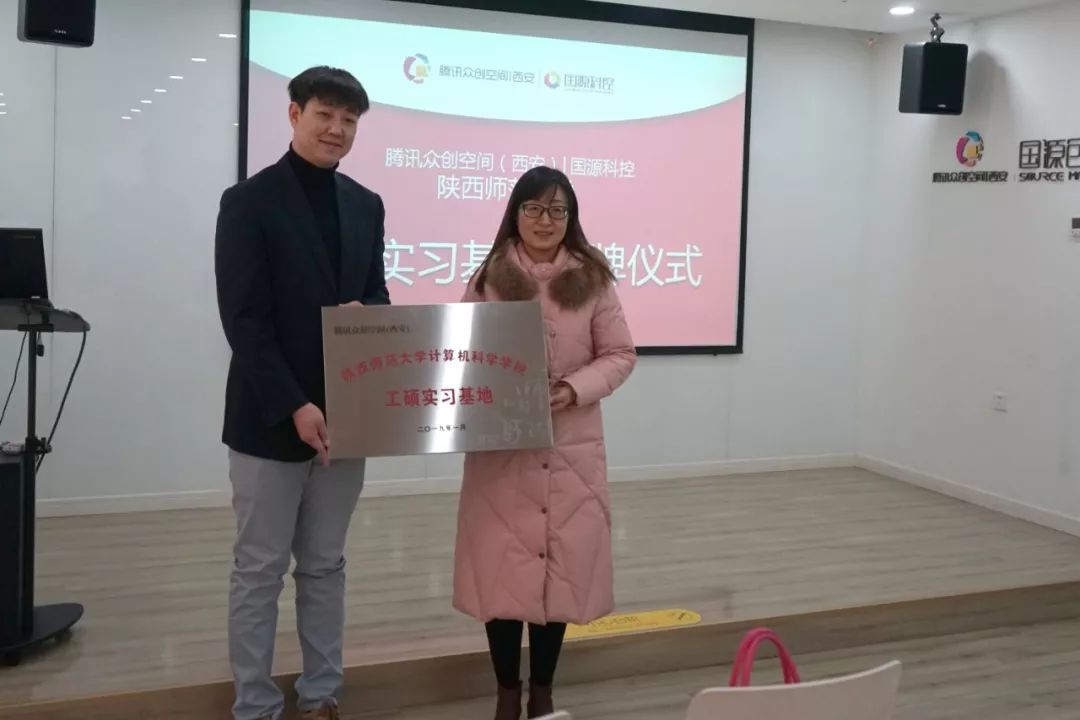 2019年1月7日上午,万象城官网副院长雷秀娟教授、计算机技术专业负责人吴振强教授、软件工程专业负责人祁超副教授前往国源科控旗下的腾讯众创空间(西安)、京东云电商创新中心,与腾讯众创空间(西安)总经理袁既方、京东云电商创新中心总经理王泽方就万象城官网工硕实习基地的建设进行了座谈,座谈结束后举行工硕实习基地挂牌仪式。