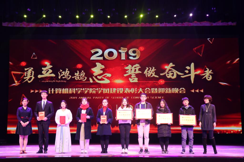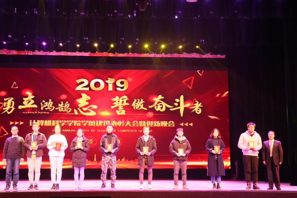 马苗教授宣读了《2017-2018学年万象城娱乐awc线路学风建设综合表彰大会表彰决定》。王小明教授、吴振强教授为黄海超、董昊等表现优秀的学术科研标兵代表颁发了证书;黄怀平老师和姚若侠教授为杨思誉、刘星霖等文艺体育标兵代表颁发了荣誉证书;袁冰老师和汪西莉教授为隋丰隆、刘佳华等表现优秀的服务奉献个人以及计算机科学与技术(创新实验班)1501班、蓝精灵志愿服务队、学院新闻中心、马列理论读书社、计算机科学协会等服务奉献团体颁发了荣誉证书与奖牌;董春生老师和毛庆老师为计算机科学与技术(创新实验班)1501班、计算机科学与技术(创新实验班)1601班、计算机科学与技术1602班、计算机类1704班等4个优良学风示范班集体与计算机类1701班团支部、计算机科学与技术1502班团支部、软件工程1502班团支部、计算机科学与技术1702班团支部等4个优秀团支部颁发了奖牌。