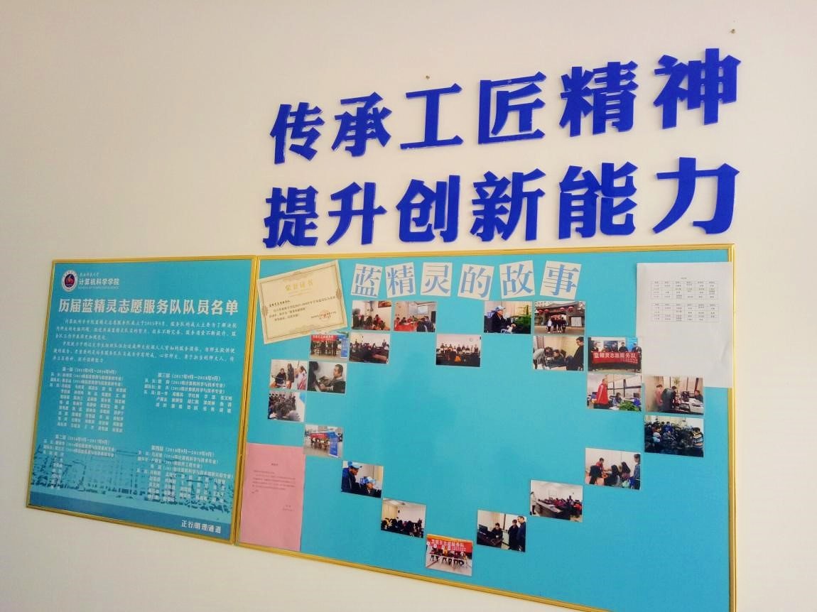 万象城娱乐awc线路蓝精灵志愿服务队由计算机科学与技术、软件工程、信息管理与信息系统专业各年级优秀本科生组成,主要解决校内师生电脑故障问题。学院加强对蓝精灵志愿服务队的工作支持与思想引领,探索将党小组建在服务队上,以“传承工匠精神,提升创新能力”为建设与发展理念,引导学生奉献社会、自觉成长成才。