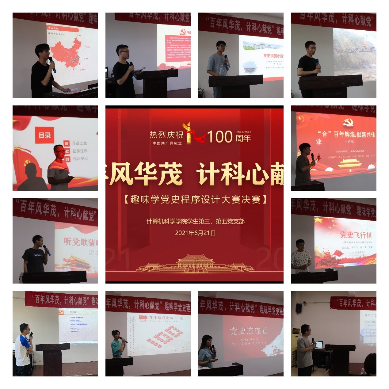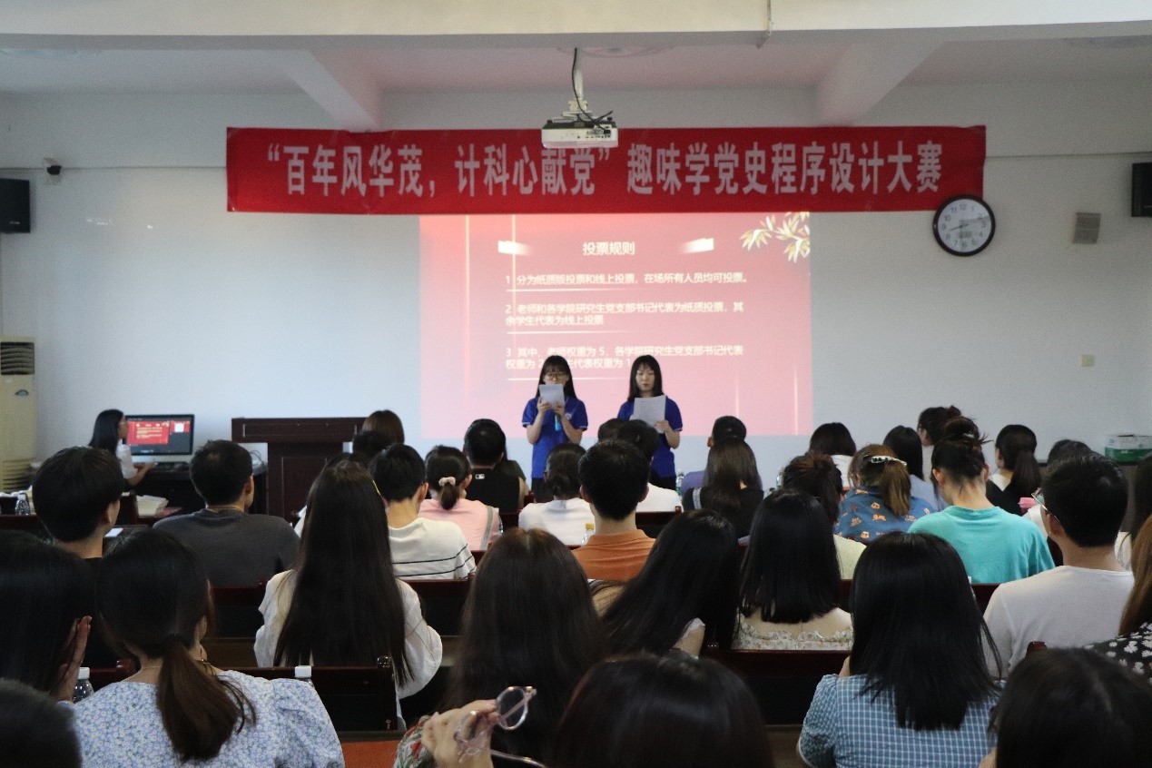 为进一步加强党史学习教育实效,将党史学习与专业特色相结合,以喜闻悦见的方式趣学党史,万象城官网学生第三、第五党支部于2021年6月21日晚在文津楼3412室学院报告厅成功举办“百年风华茂 计科心献党”趣味学党史程序设计大赛决赛。本次活动由支部书记任仰、禹棋洺同志主持,学院党委书记王耀明、研究生辅导员蒋江红、研工部杨雅程老师及各学院研究生党支部书记代表等作为评委参加活动。