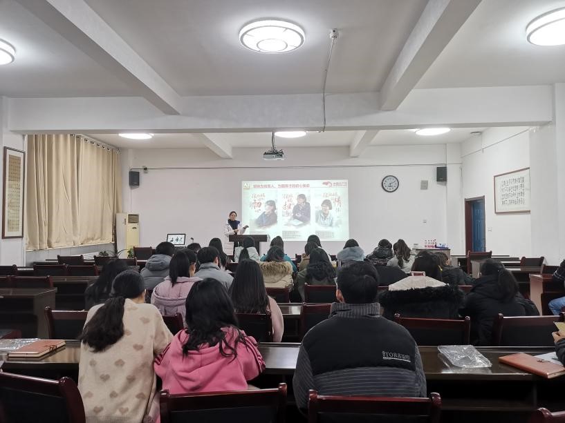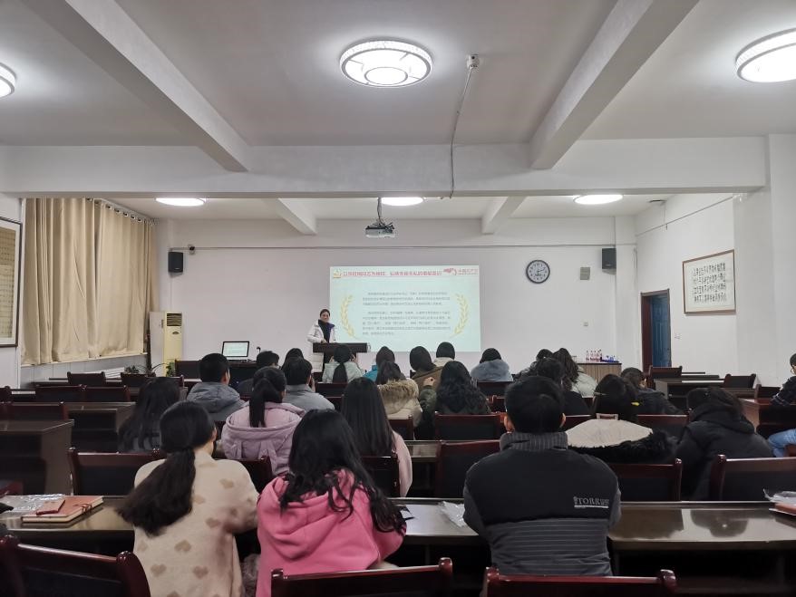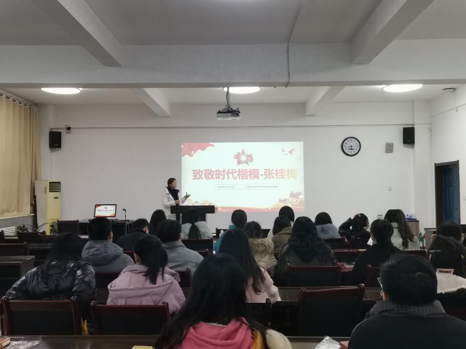 为弘扬时代精神,加强党员党性修养,发挥党员同志的先锋模范作用,万象城官网学生第五党支部于12月29日在文津楼3412报告厅开展了党课学习,由支部书记张莹同志进行了“致敬时代楷模-张桂梅”的党课讲授,支部全体成员参加。