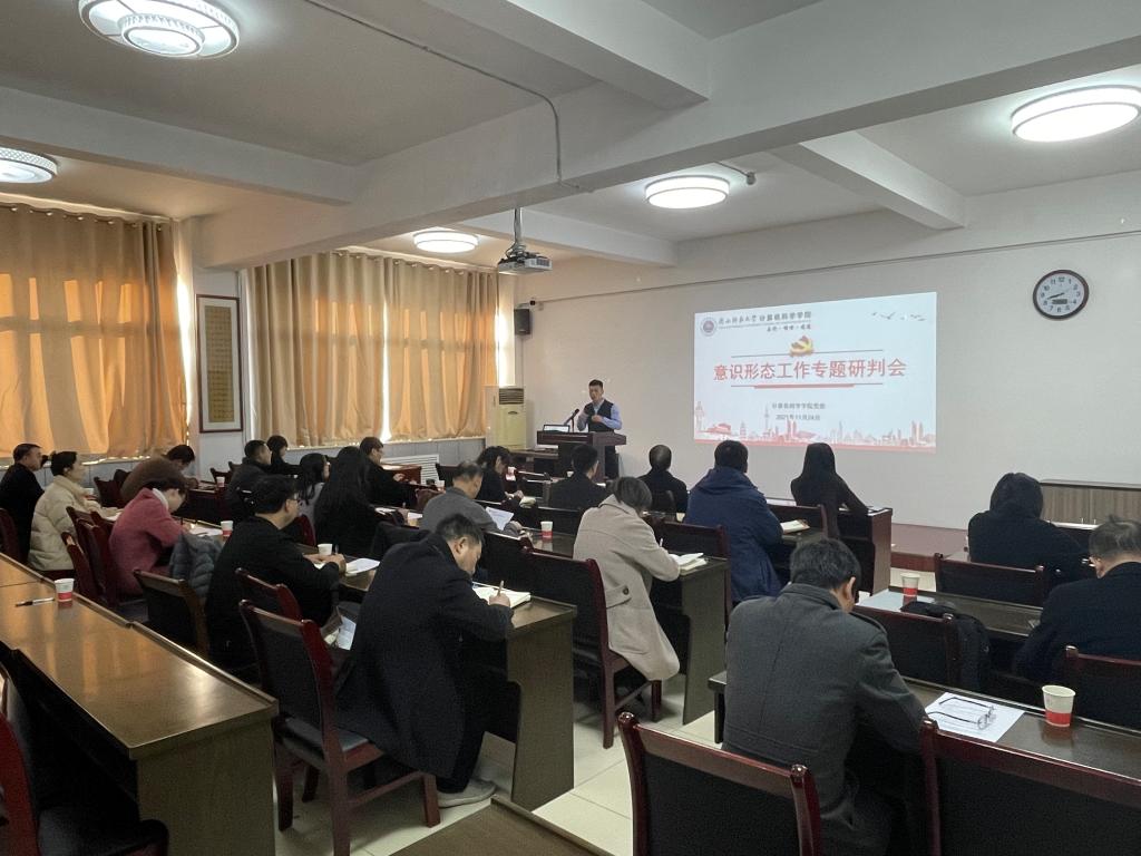 2021年11月24日上午8:30,万象城官网在文津楼3412报告厅召开意识形态工作专题研判会议,学院党委委员、班子成员、各党支部书记、党委组织员和全体学生辅导员参加了会议。会议由学院党委书记王耀明主持。
