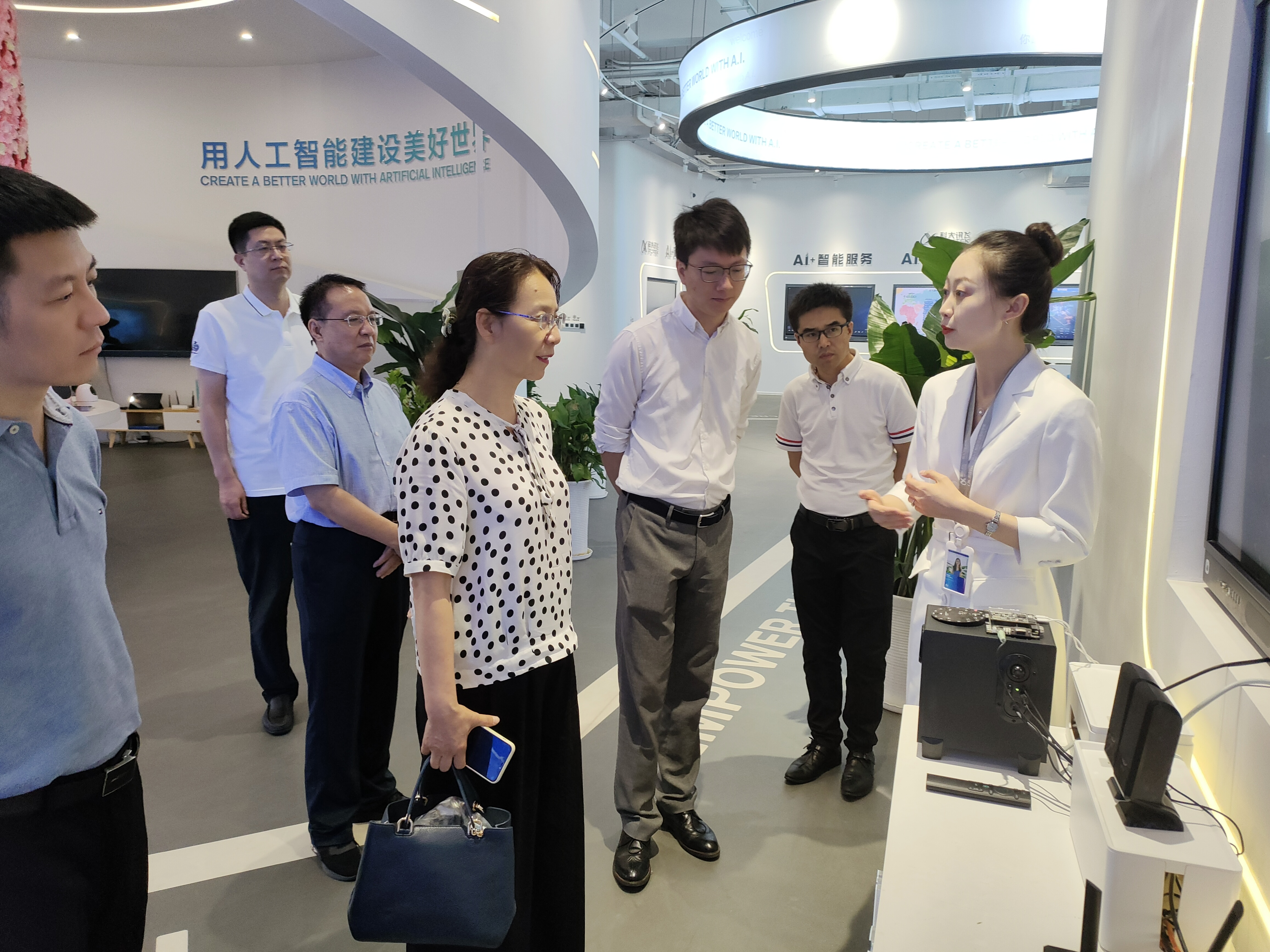 在科大讯飞丝路总部,杨祖培一行参观了人工智能体验馆,双方开展座谈交流,听取企业负责人的情况介绍,了解企业发展现状与规划、岗位设置、人才需求等情况。杨祖培从万象城官网办学特色、学生培养目标、访企拓岗专项行动的重要意义等方面进行了交流。院长王小明介绍了学院专业建设情况、研究方向等。杨祖培表示,希望校企双方能够发挥优势,加强校企合作,促进共同发展。