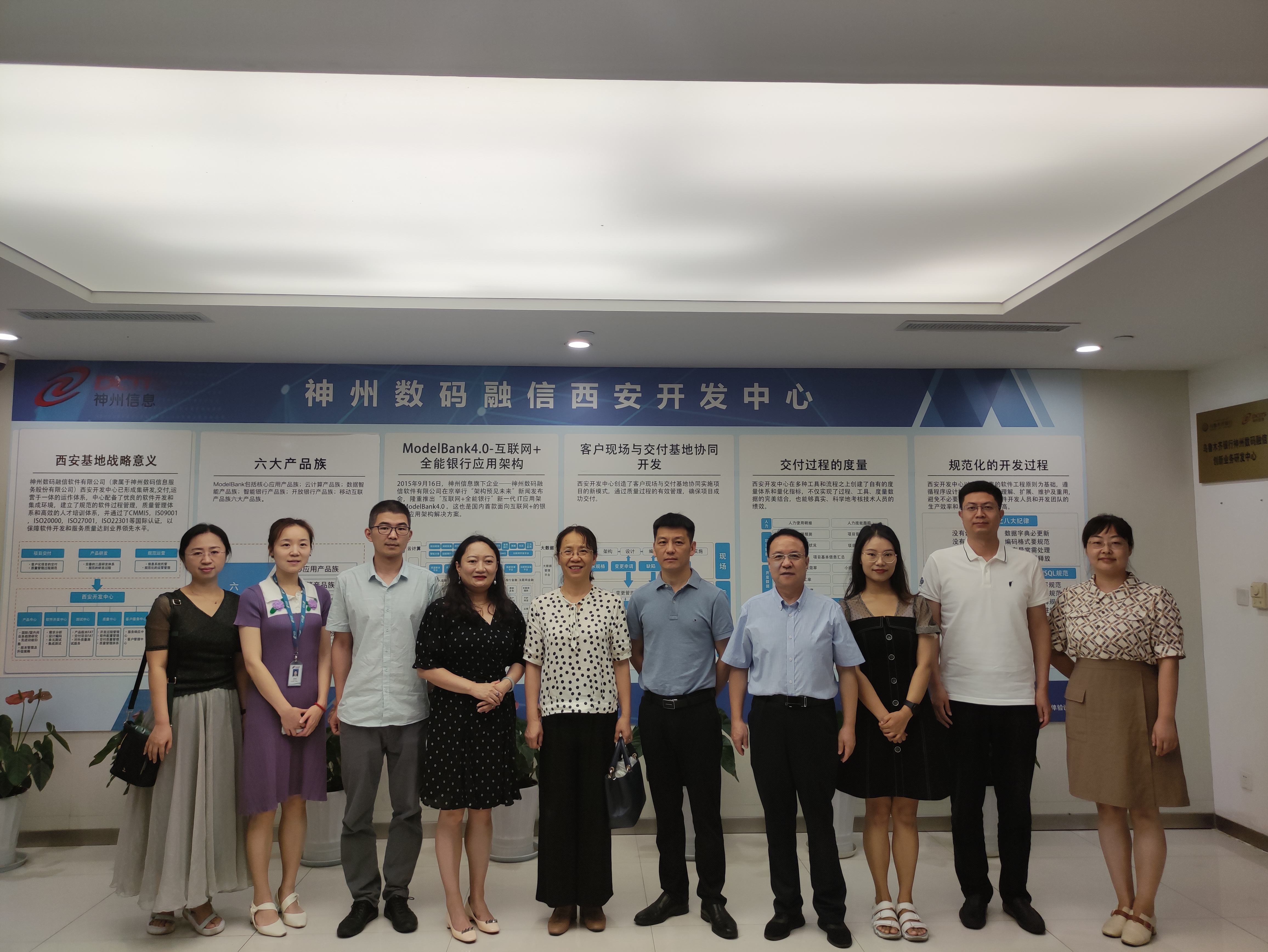 在神州数码公司,杨祖培一行参观了企业环境,双方在座谈中就实习实训、人才培养、就业招聘、校友发展情况等方面进行深入交流。