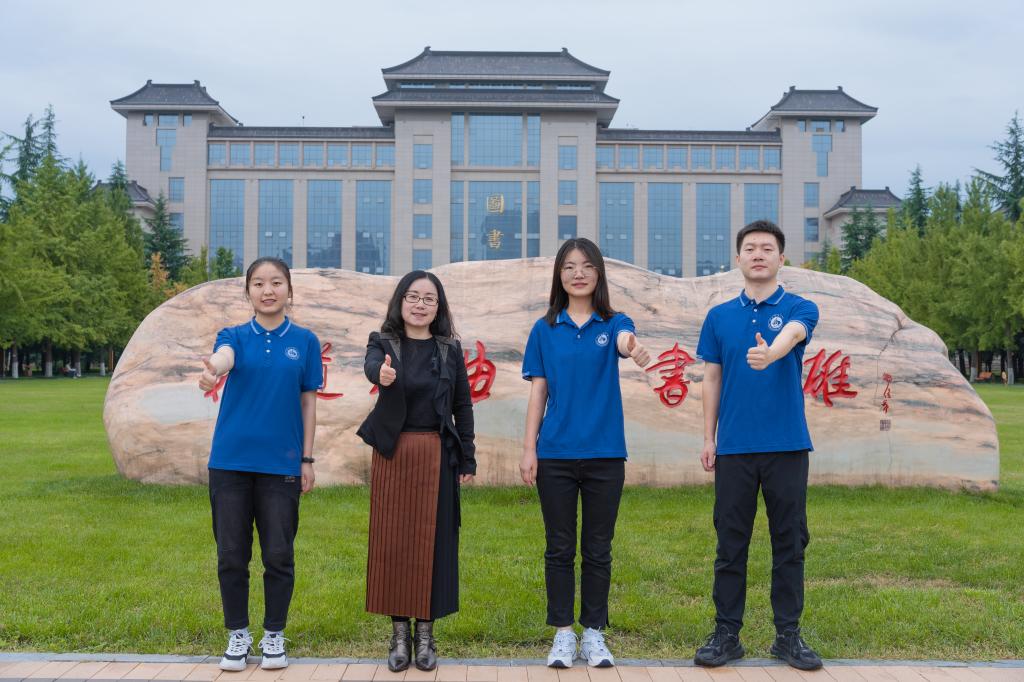 一等奖获奖团队(从左至右:马金丽、张玉梅教授、吕小姣、库银涛)