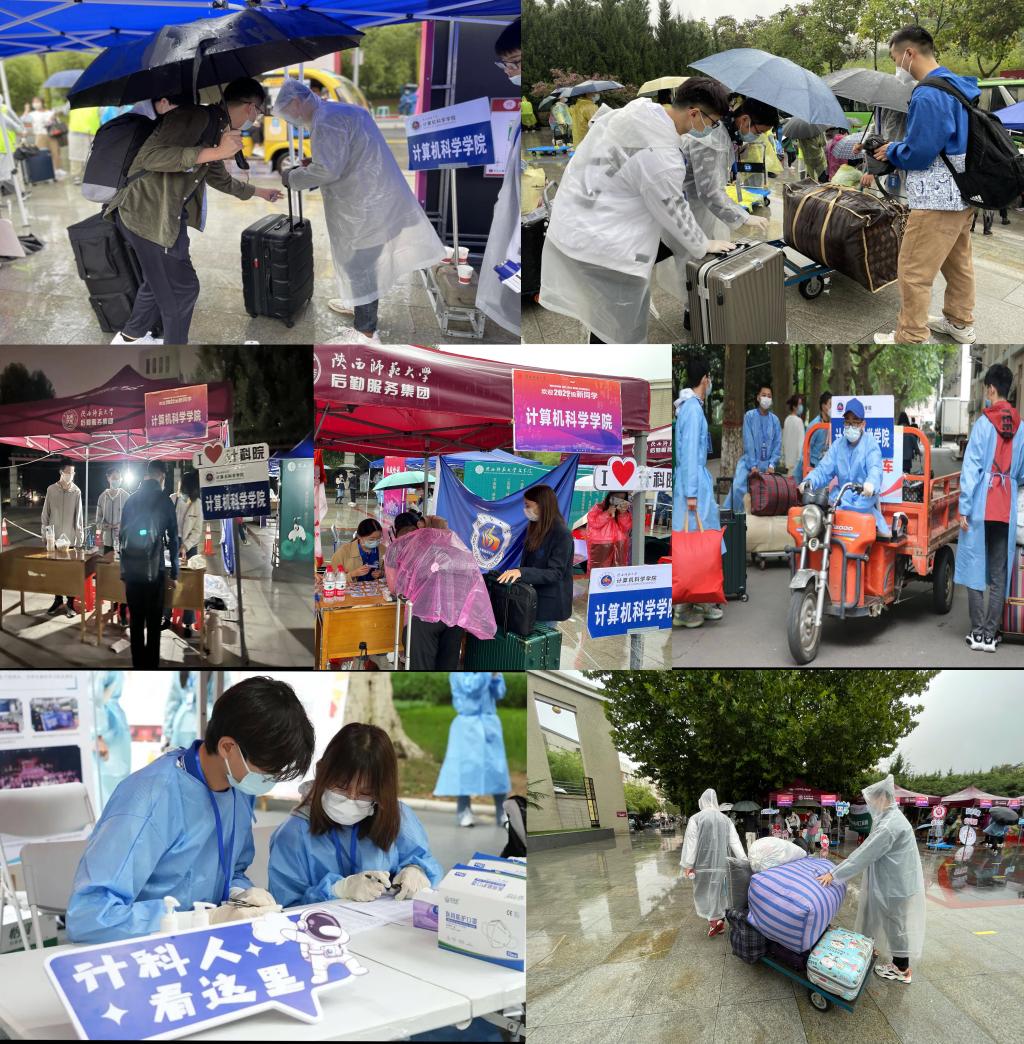 无论是阴雨连绵还是秋风瑟瑟,无论是长安校区还是雁塔校区,学院学工组全体辅导员及志愿者始终坚持在工作一线,井然有序地开展相关工作。新生到达迎新点后,志愿者第一时间做好信息核查、测温、行李消杀等工作,做好入学签到手续,帮助新生搬运行李,将新生送往宿舍园区。