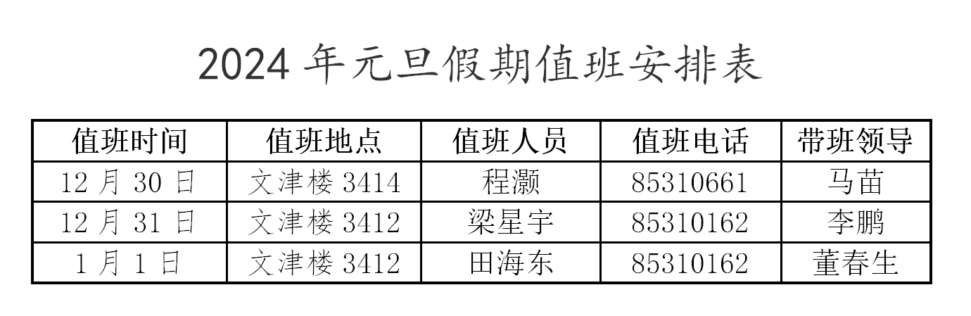 万象城娱乐awc线路2024年元旦假期值班安排