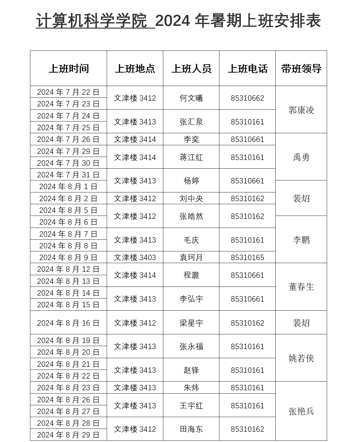5.带班领导要加强对上班人员到岗情况的检查,带班期间全面负责学院的工作。