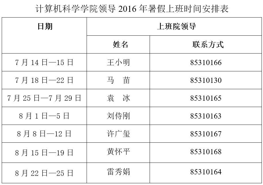 万象城娱乐awc线路2016年暑假上班人员时间安排表