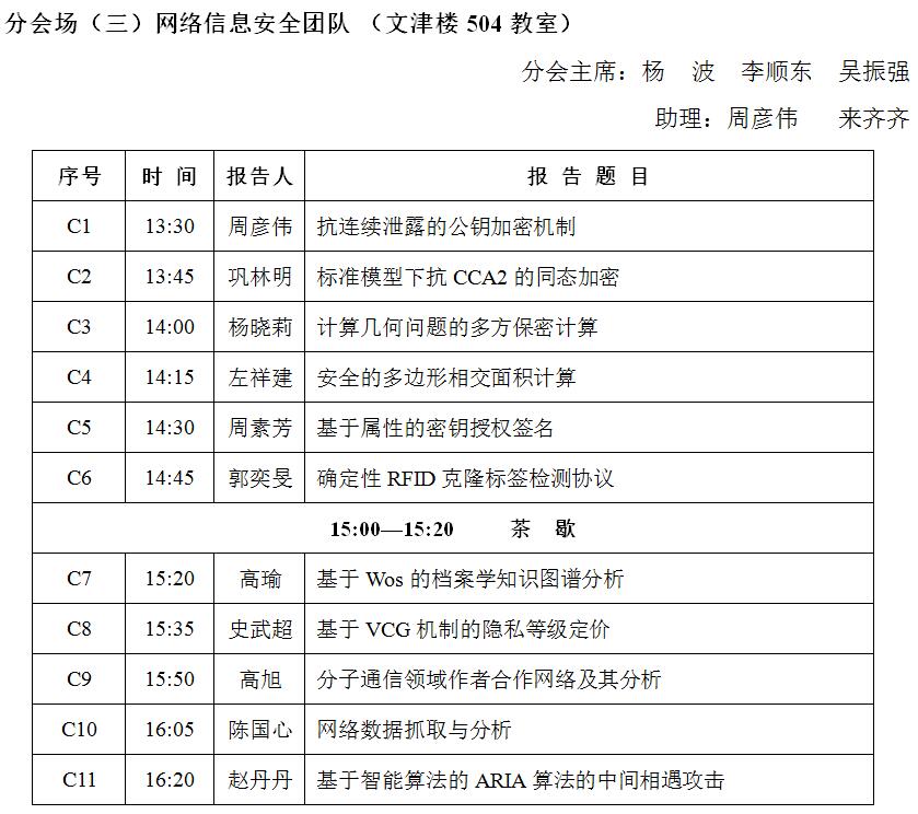 分会场(三):研究生专场(网络信息安全团队) 长安校区文津楼504教室