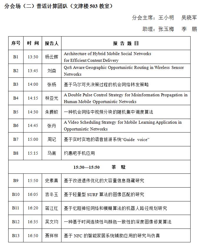分会场(二):研究生专场(普适计算团队) 长安校区文津楼503教室