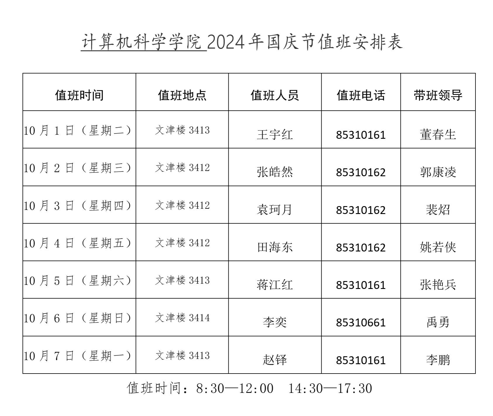 万象城娱乐awc线路2024年国庆假期值班安排