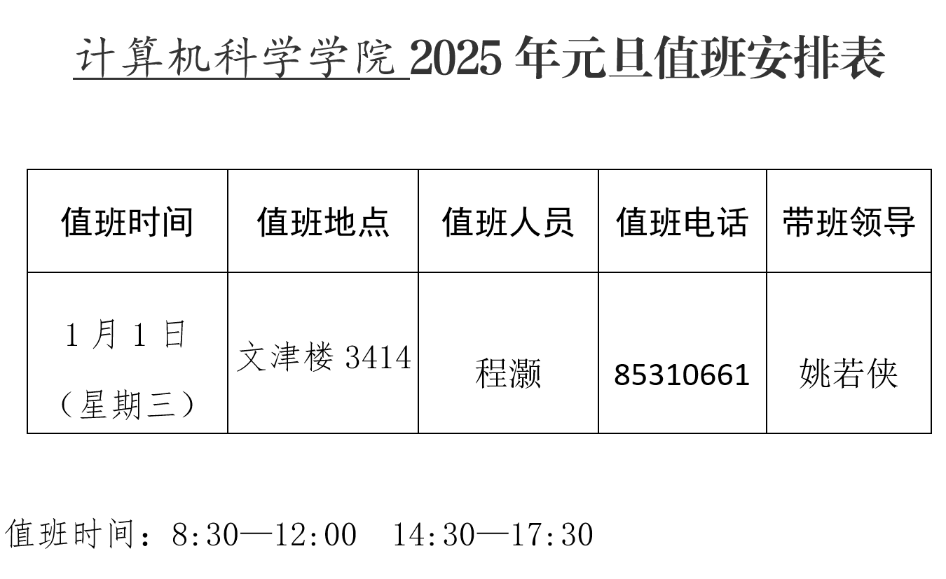 2025年元旦值班安排