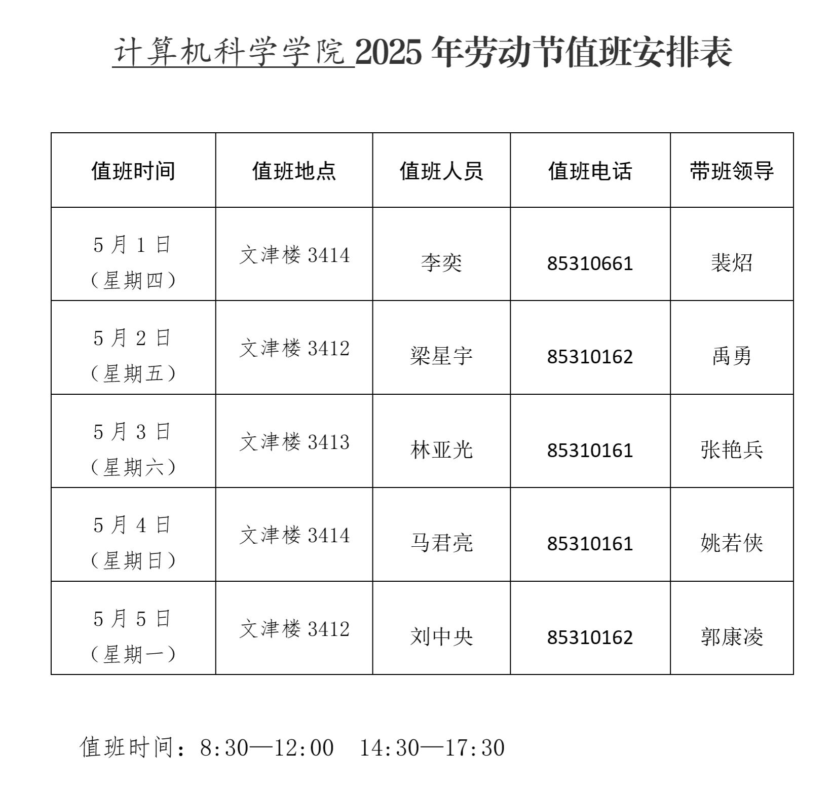 万象城娱乐awc线路2025年劳动节值班安排