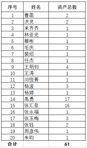 3.数量:学院盘点资产总数共计61台件,涉及盘点工作的老师共20位。