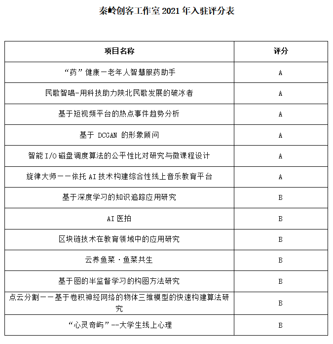 万象城官网于6月23日组织了2021年度秦岭创客工作室入驻项目遴选推荐工作。通过项目组申报答辩、院内专家评审等程序,共遴选出13个项目入驻创客工作室,A类项目6项(入驻文津楼3624),B类项目7项(入驻文津楼4楼创客坊),现将拟推荐项目名单予以公示(详见附表)。推荐项目将于7月5日起入驻秦岭创客工作室,并按照《秦岭创客工作室》入驻指南进行项目培育。