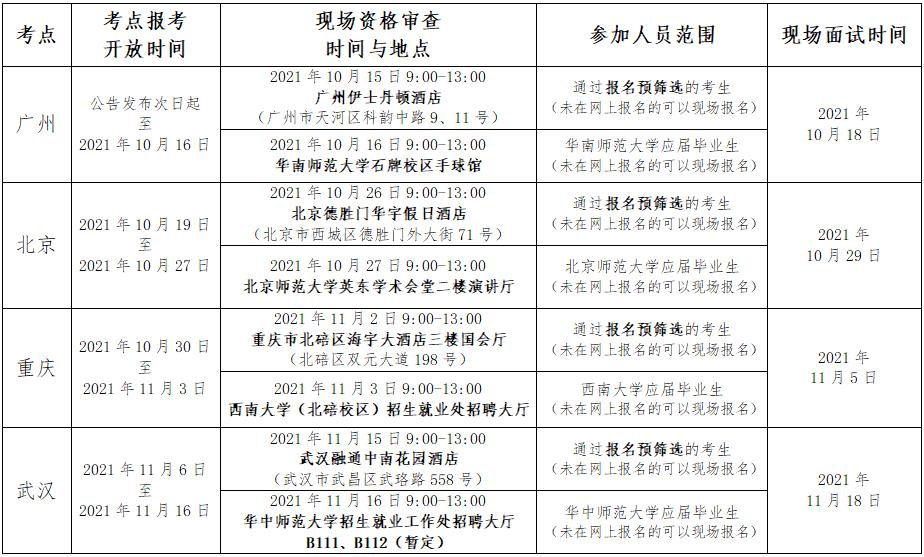 2.各考点资格审查时间与地点: