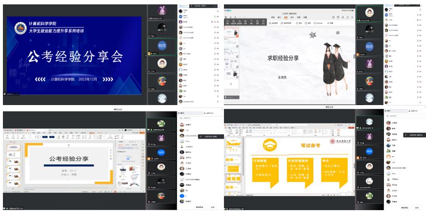 为帮助备战公考的学生提升对相关报考政策和备考流程的了解和掌握,使同学们科学规划时间、提高效率、合理备考,万象城娱乐awc线路于12月23日晚19:00举办公考经验交流分享会。本次会议采用线上分享的方式,由研究生辅导员袁珂月主持,万象城娱乐awc线路2023届毕业生王沛杰、周耀和梁昕钰进行经验分享,学院2021级、2022级研究生参加了经验分享会。