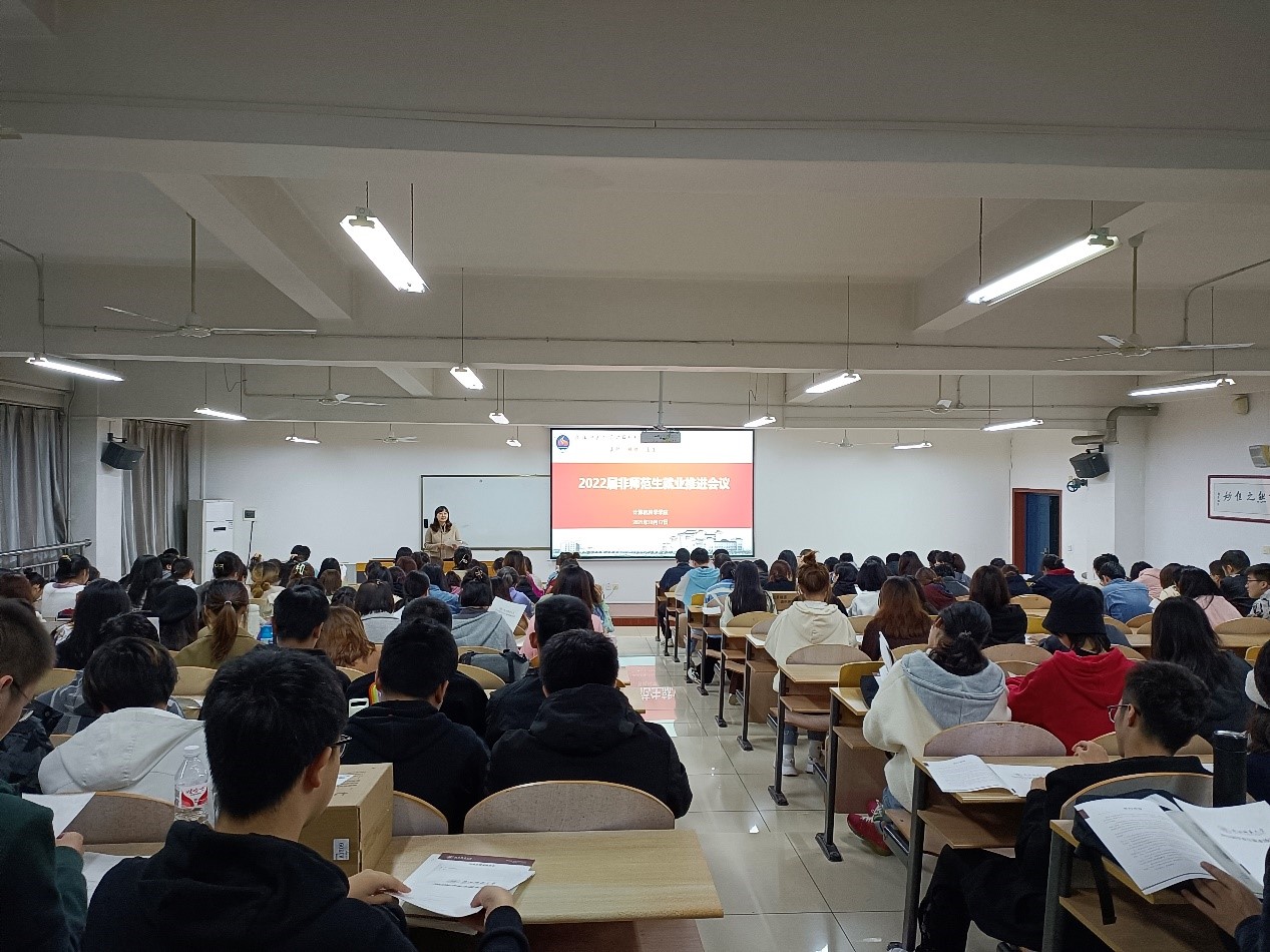 为进一步推进毕业生就业工作,10月17日下午,万象城官网在文津楼3121报告厅召开2022届非师范本科毕业生就业推进会议,学院党委副书记郭康凌、2022届全体非师范毕业生参加会议。会议由毕业班辅导员田海东主持。