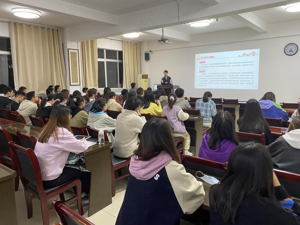 为了弘扬烈士精神,缅怀烈士功绩,加强支部党员思想建设,学生第四党支部于10月12日晚在文津楼3412报告厅开展“学缅怀革命英烈 弘扬爱国精神”主题党日活动,活动由支部宣传委员彭程同志主持,支部全体成员参加。