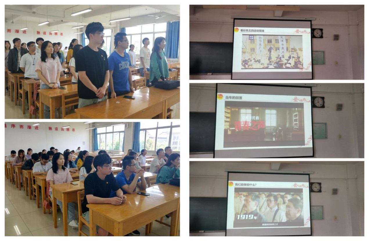 在嘹亮的团歌声中,此次团日活动正式拉开帷幕。首先,王琳带领全体团员观看和学习了经过现代技术修复的珍贵历史影像,回顾了五四运动中人头攒动、壮志激昂的现场,聆听了志士仁人的爱国之声,了解了五四精神的背景和起源。她强调,我们作为新时代的新青年,要时刻保持“想干事、能干事、干成事”的精神风貌。