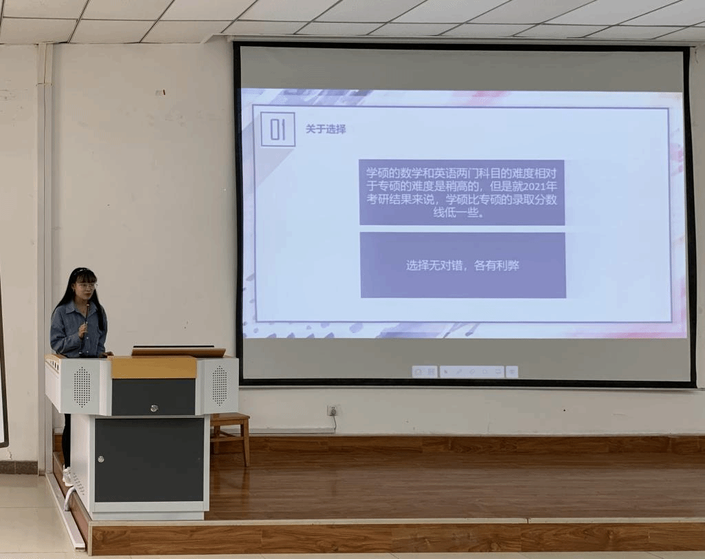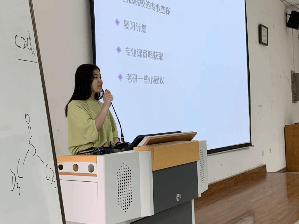 李楠学姐和同学们交流了如何选择外校考研。李楠学姐提到。在复习过程中,一轮难度大是普遍存在的现象,坚持即可,做题要求精而不贪多,真题在复习过程中起着极大的作用,每一道题都要懂,都要会。在选择好学校以后,一定要注意夏令营的投递截止时间和学校的专业课考试内容。李楠学姐最后谈到,考研是一个人的旅程,不要害怕孤单,不要和其他同学比较复习进度,不被其他不考研的同学影响心态,戒骄戒躁,一路前行。