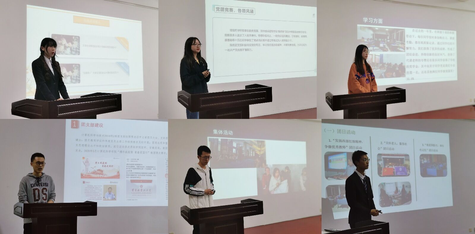 崔瑜璠首先向大家介绍了召开本次“先进班级”评选的目的及答辩规则,希望大家开拓思维、发挥团队优势,呈现出各班级最佳的精神面貌。随后,各评选班级代表依次上台进行答辩陈述,大家创意十足,有合唱、有朗诵、有问答,用多样的形式展现了计科学子丰富多彩的大学生活,展现了青春活力、团结向上的精神面貌。