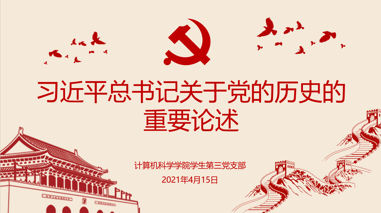 为扎实开展党史学习教育,认真学习贯彻习近平总书记系列重要讲话精神,加强支部党员思想建设,万象城官网学生第三党支部于4月15日晚在文津楼3412报告厅开展“学习习近平总书记关于党的历史的重要论述”主题学习,活动由支部书记任仰同志主持,支部全体成员参加。