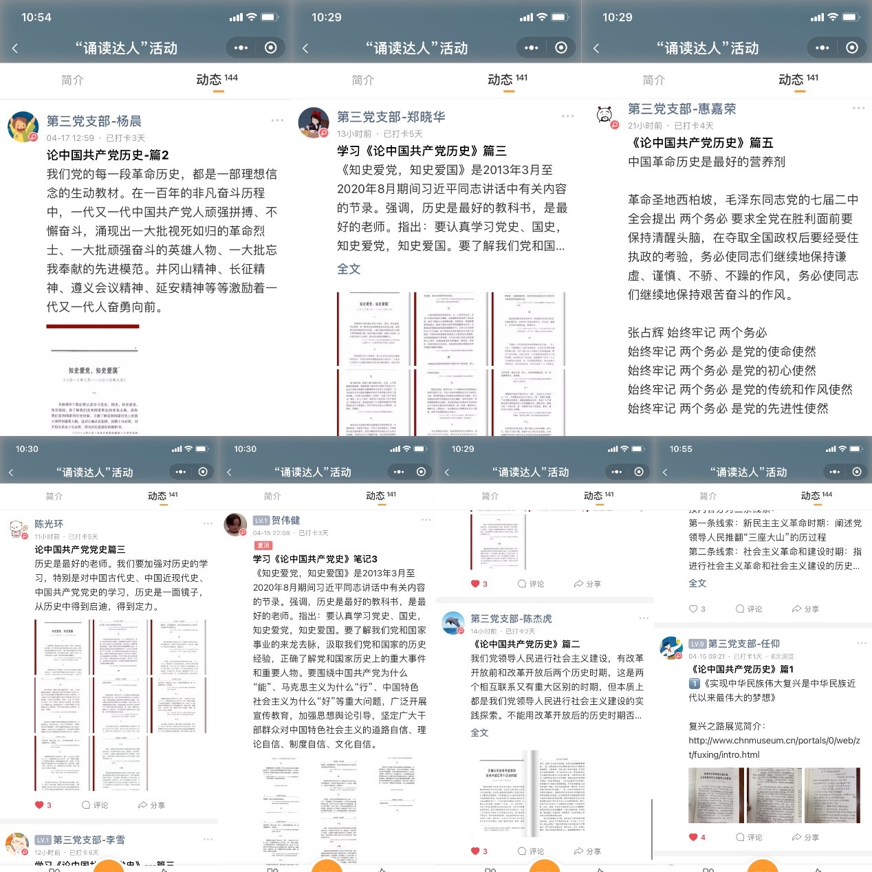 之后,支部党员共同诵读习近平同志《论中国共产党历史》一书,利用打卡小程序于本月内共读本书。该书收入习近平同志2012年11月29日至2020年11月24日期间关于中国共产党历史的重要文稿40篇。任仰同志就主要篇目进行了介绍,领读学习了第一篇《实现中华民族伟大复兴是中华民族近代以来最伟大的梦想》。