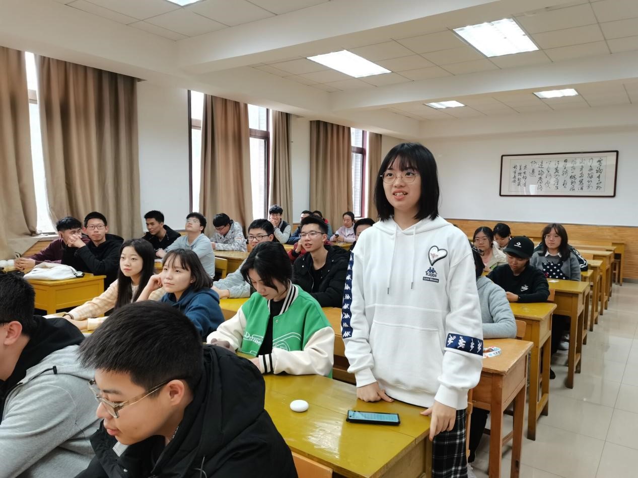 最后,大家就两会精神展开了热烈的讨论。舒进同学发言,提出了自己的看法:“两会精神在我们的学习生活中无处不在,新时代的我们,更要将两会精神贯彻于自己的思想和以后的学习之中,为祖国建设贡献自己的力量。”在同学们强烈的情感共鸣中,本次团日活动圆满结束。
