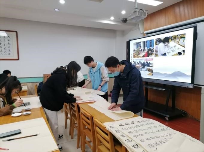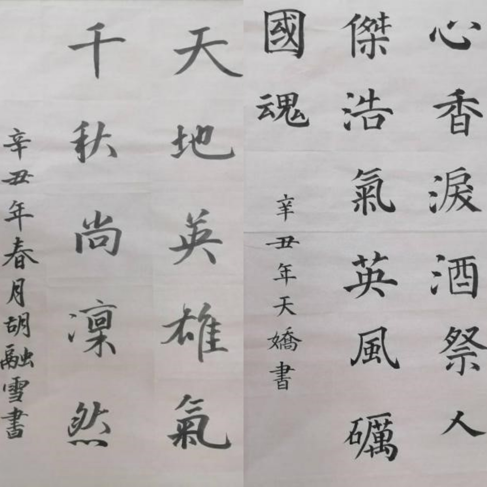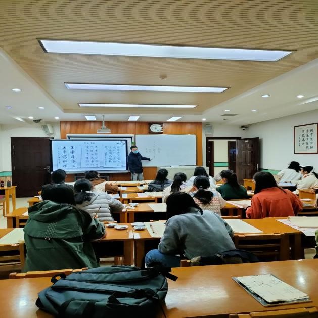 课上,书法培训班郝晋暄老师为学员们讲解了书法创作的折纸方法、书法布局和落款格式。随后,学员们参照提供的书写内容进行书写或进行自由创作,从一撇一捺中感受书法精髓,体会革命先烈们的英雄气概,赓续民族的精神基因,表达对为保家卫国而献出青春热血的革命英烈们的深深哀悼和缅怀。