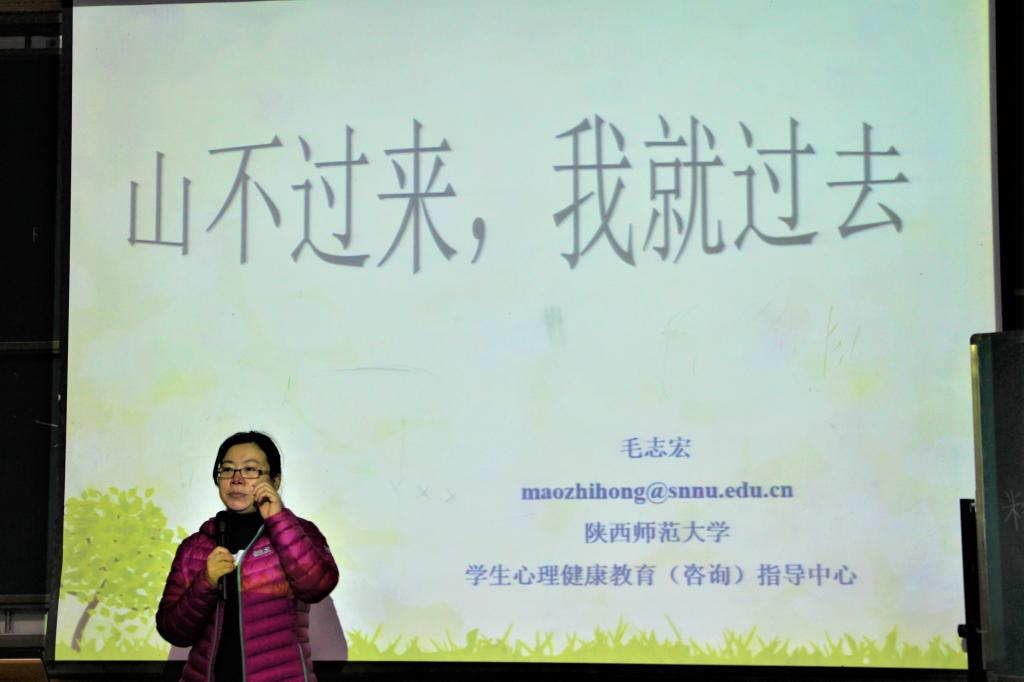 2020年11月19日晚19时,万象城娱乐awc线路入学教育系列讲座之心理健康教育讲座《山不过来,我就过去》在雁塔校区教学5楼5104教室顺利举办。本次讲座由万象城娱乐awc线路心理健康中心主任毛志宏老师主讲,万象城娱乐awc线路2020级辅导员毛庆和全体同学参加了本次讲座。