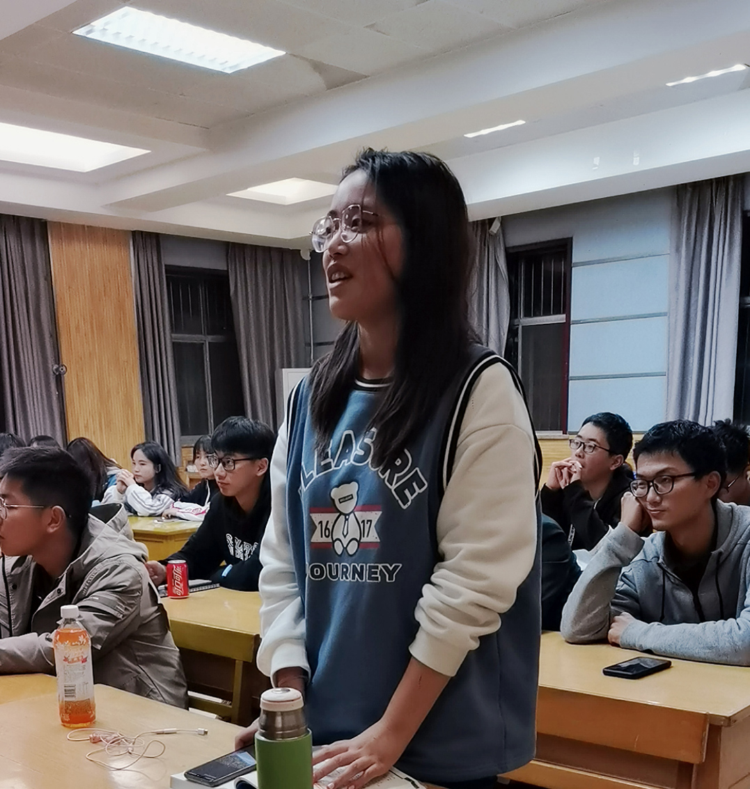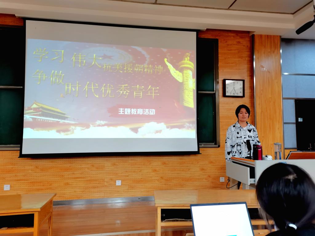 本次班会由团支书吴雪儿主持,团支书利用PPT、问答题等方式向同学们介绍了抗美援朝战争中的典型英雄人物。紧接着,团支书请社会实践活动主题为关于抗美援朝调查的思修小组分享活动感想。代表发言的同学提到,从小卖部老板,到街边休息的老爷爷,对于抗美援朝战争都十分了解,而我们作为新时代的新青年,更应该传承红色基因,弘扬爱国主义,铭记历史,着眼未来。
