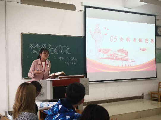 最后,辅导员安琪进行了总结发言,她肯定了同学们认真的学习态度和精彩的成果展示,同时也对同学们提出了三点期望:一是保持学习热情。心有所信,方能远行。希望同学们认真研读“四史”,走好这次“精神上的长征路”;二是感悟成功来之不易。要深刻认识红色政权、新中国和中国特色社会主义来之不易,牢记党的初心使命,感恩幸福生活; 三是坚定理想信念,走好属于我们这一代人的长征路,发扬“西部红烛”精神,为祖国教育事业发展添砖加瓦。