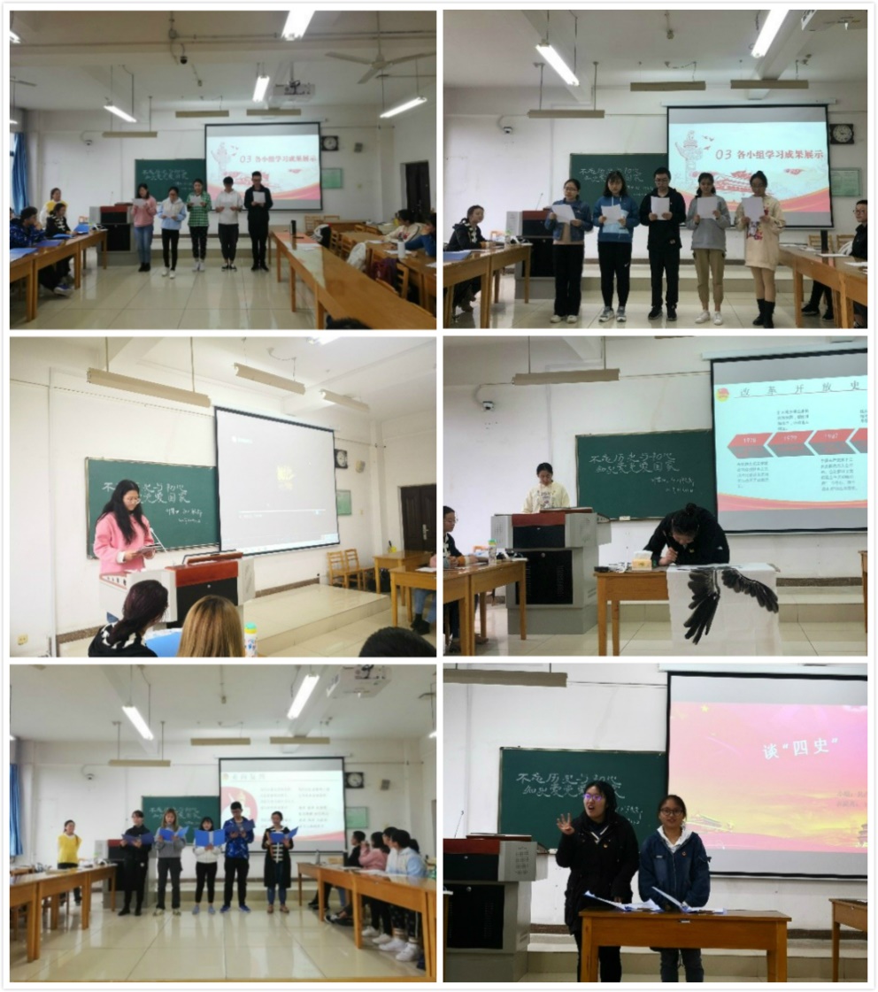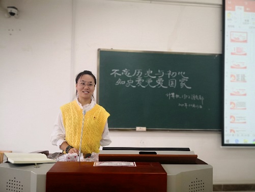 活动在嘹亮的团歌声中拉开帷幕。活动第一项,王琳对党史、新中国史、改革开放史和社会主义发展史的主要内容进行了详细介绍,使同学们得以更全面地认识“四史”,了解“中国共产党的伟大斗争史” “中华民族从站起来、富起来到强起来的伟大飞跃史” “中国人民从温饱不足到小康富裕的伟大飞跃史”和“中国特色社会主义从创立、完善到发展的伟大飞跃史”。