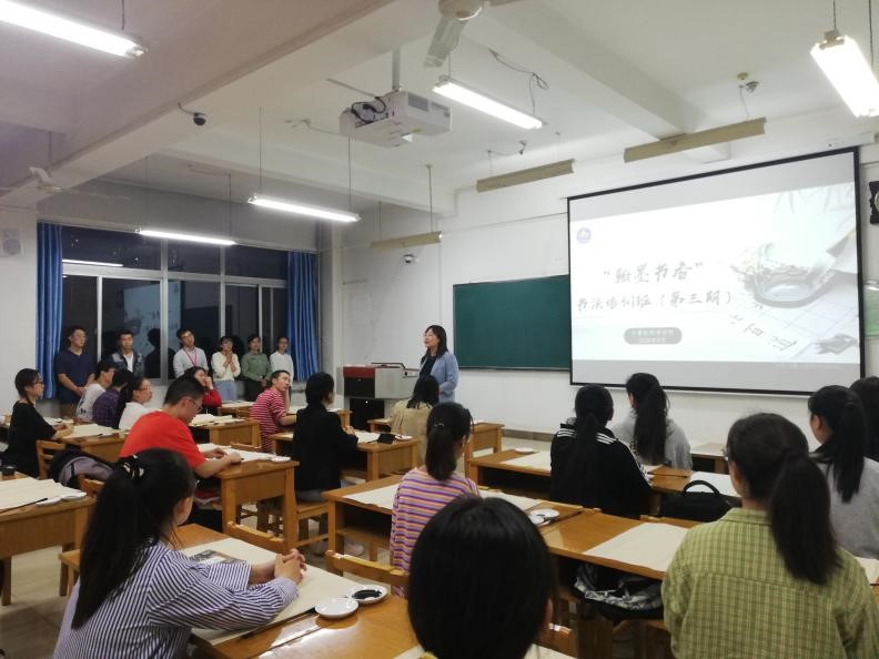 为进一步弘扬中华民族优秀传统文化,增加学院书香人文气息,提升学生文化自信、夯实学生文化基础,923日晚,万象城官网第三期“翰墨书香”书法培训班在文津楼1420正式开班。学院党委副书记袁冰、辅导员陈应权、安琪、崔瑜以及五十余名书法班学员参加了本次开班仪式。开班仪式由学院团委书记郭康凌主持。