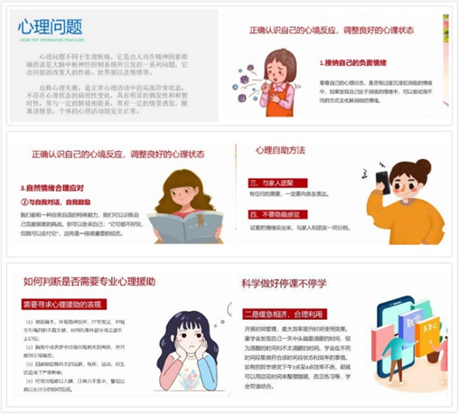 软件工程1802班首先介绍心理问题的相关概念,让同学们正确认识心理问题。接着,主持人介绍了心理自助的四种方法以及如何判断自己是否需要专业的心理援助,帮助同学们认识自己的心理状态,学会调节情绪。最后,为了帮助同学们合理管理时间,正确对待线上学习,主持人对如何科学做好“停课不停学”进行了讲解。