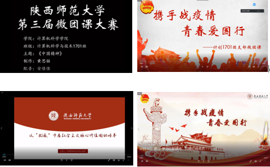 学院本科生、研究生各团支部充分结合专业优势,紧紧围绕“战疫情”主题,运用丰富的表现形式,将当代大学生的爱国情怀、理想信念、青春梦想与微团课紧密结合,呈现出了精彩有意义的风采展示。本次比赛共提交微团课作品19份,内容充实,形式多样,能够以小见大,落细落实,有思考、有视野、有情怀,促进了共同提高。望各团支部今后创造出更加优秀的作品,提升团课教育的感染力吸引力,使微团课成为学习理论、传递信仰的窗口。