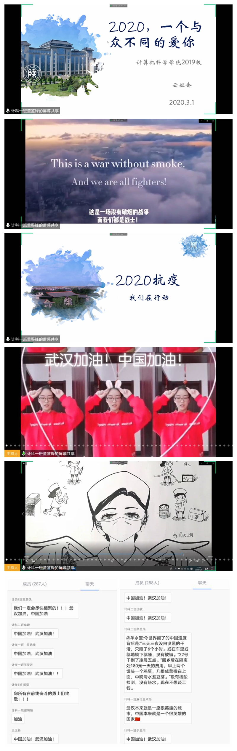 通过此次“云”班会,希望同学们能坚定信心、共克时艰。明白疫情情况的好转是由全国人民的严防死守和武汉人民的巨大牺牲换来的,它的背后,是千千万万个拼命的中国人,也是一个展现强大力量的国家!
