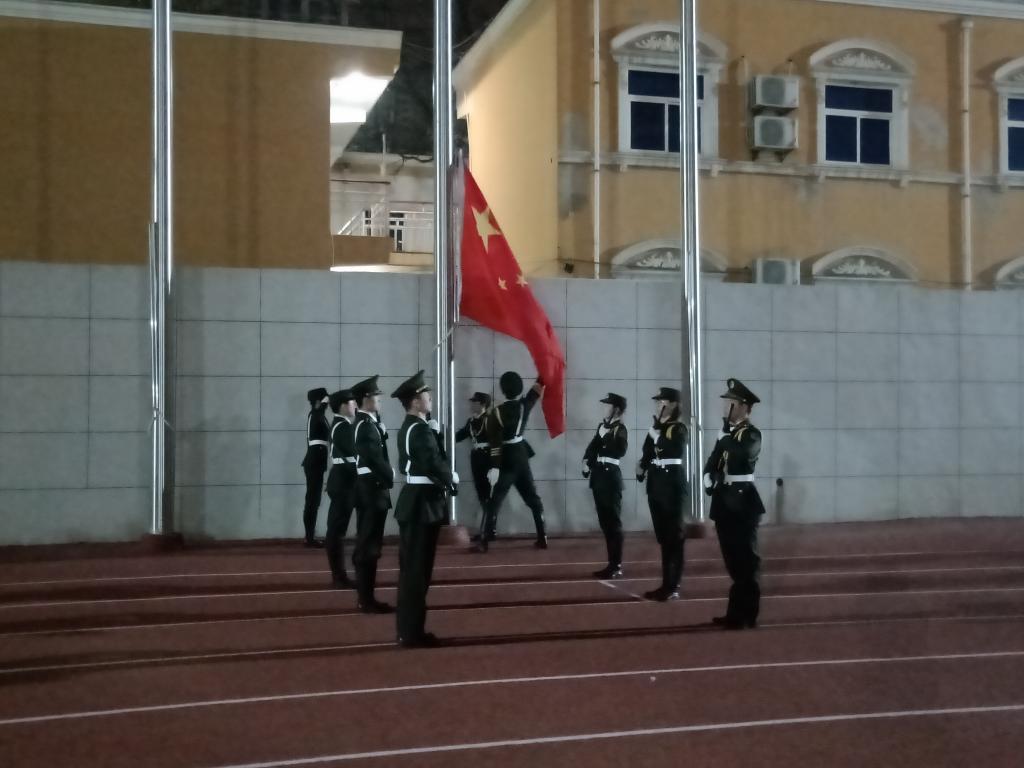 晨光微熹,东方欲晓。迎着严寒,537名计科学子已经整理好着装,等待即将举行的升旗仪式。在全体师生的注视下,国旗护卫队队员们迈着整齐的步伐,护送鲜艳的五星红旗进场。出国旗、送国旗、奏唱国歌,伴随着庄严的《中华人民共和国国歌》,五星红旗冉冉升起,迎风飘扬。在场的每一个人向国旗行注目礼,深怀对祖国无限的热爱和崇高的敬意。