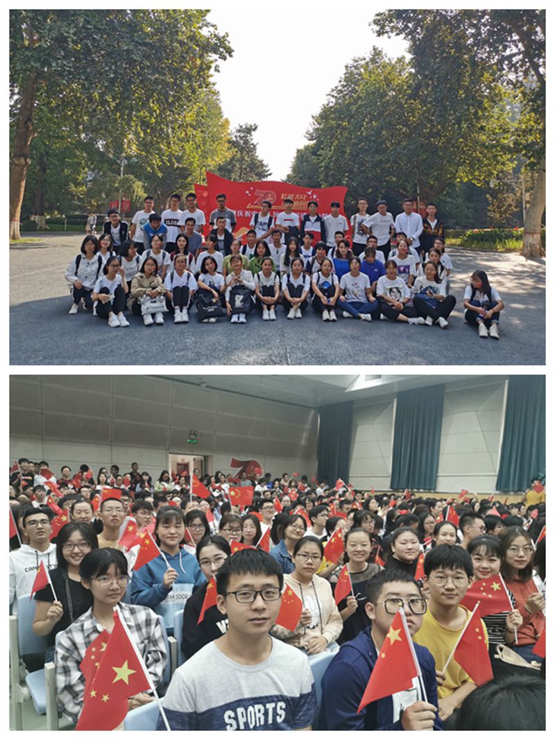 “祖国”二字,让多少人心中涌动激情,让多少人血管奔腾热血。在祖国七十华诞之际,2019级各班级举办主题班会、录制祝福视频、集体观看阅兵仪式,用自己的方式告白祖国,同学们纷纷表示很荣幸能生活在中华民族昂扬奋进的美好时代,生逢其时也重任在肩的他们一定会勤奋学习,用知识报国,让青春的心跳与爱国的情怀同频共振。