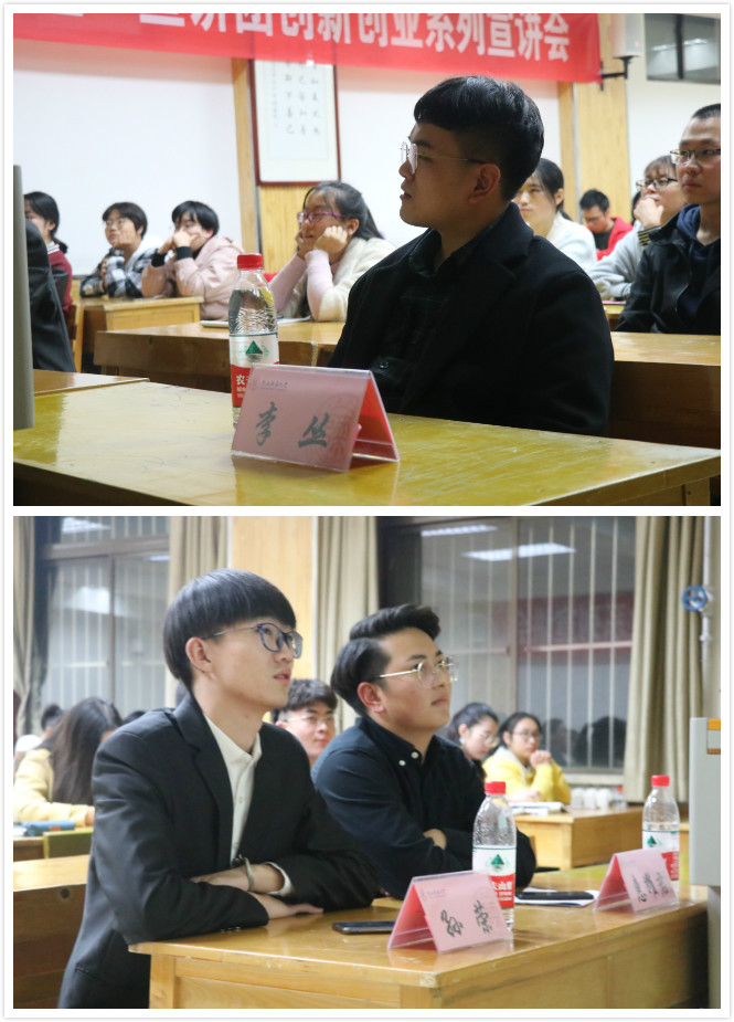 系列宣讲前两轮于10月20日晚在雁塔校区5204教室举办,由我院学习科创部副主席李嘉琪主持,分别面向万象城官网2019级及2018级本科生。侯秋源同学就“创青春”全国大学生创业大赛的办赛基础、创办时间、主办、承办单位、项目类型及发展历史等方面做了详尽的讲解,让同学们对“创青春”这项创新创业赛事有了更加全面、丰富、多元的了解。邢思瑶同学分享了创青春院赛的详细安排,并对项目初期孵化方式做了大致的讲解。她详细介绍了如何选择项目、如何组建团队、如何选择指导老师、如何撰写商业计划等,为同学们实际操作提供了更多的可能性。