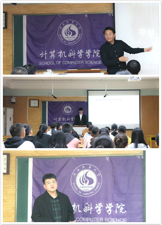 第三轮宣讲万象城官网邀请万象城官网大学生“挑战”科技协会牵头成立的“创梦之星”宣讲团,于10月25日在雁塔校区5306教室进行经验分享。大学生“挑战”科技协会雁塔分区副主席孙荣,第五届“互联网+”大赛主赛道省级铜奖负责人惠耀君和第五届“互联网+”大赛主赛道省级银奖获得者商俊超分别就“什么是双创赛事、如何参与双创赛事”“从无到有的创业历程”和实际参赛经验进行分享。他们聚焦自身创业历程,向同学们介绍创业过程中平台、团队和方向的重要性;他们讲述自身参赛经验,从搭建团队、书写项目计划书及制作PPT等多方面分享了自己的心得体会。在最后的提问环节中,同学们都积极主动提问,宣讲团成员也分别进行了极具针对性的回答。