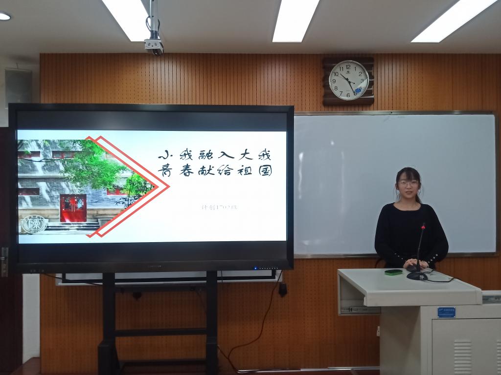 最后,宋澳华以“当代大学生能为祖国建设做什么”主题演讲结束了本次团日活动。她指出,当代青年要知我中华、爱我中华,立志成才、报效祖国,踏着时代的鼓点,以国家的发展轨迹定义个人的成长坐标,把个人追求融入民族复兴的伟大理想。
