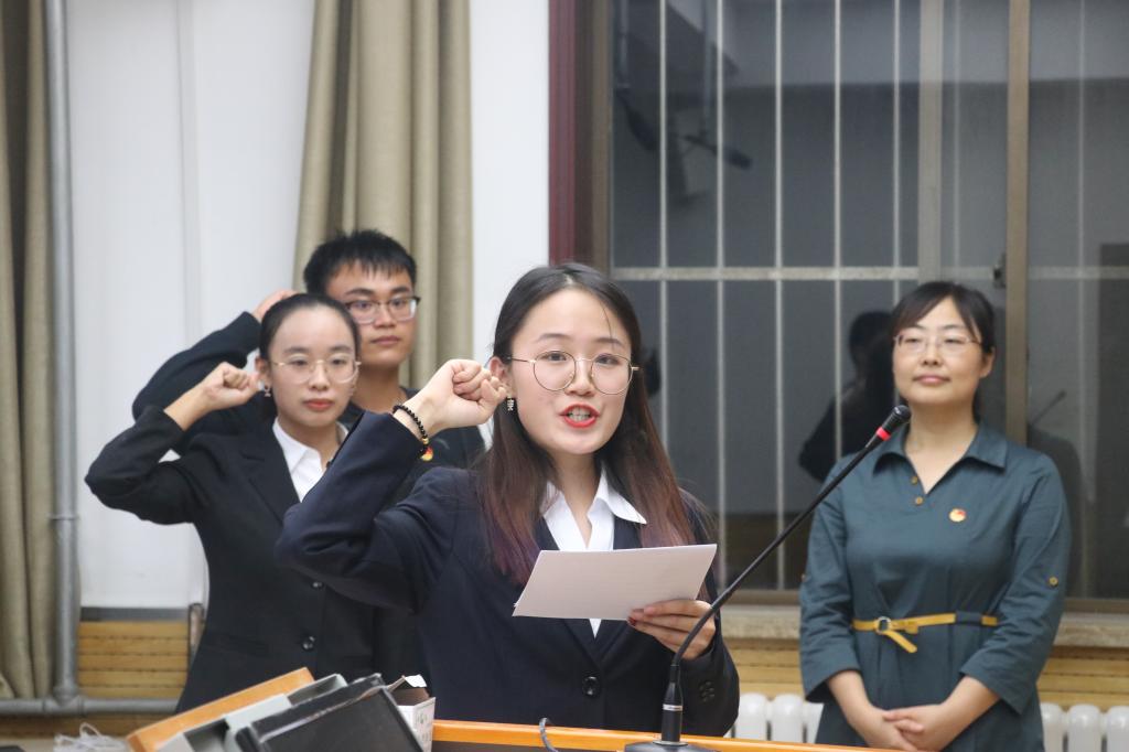 各学生组织负责人王越、郭琳、李艳、卢臻玄分别作了表态发言,介绍了本部门的职责与义务,对部门未来的发展及工作安排进行展望,表达了将团队带领得越来越好、为万象城官网发展增添力量的决心。与会嘉宾还为新一任学生干部颁发了聘书。新一届学生会主席王越带领全体学生干部进行了宣誓。