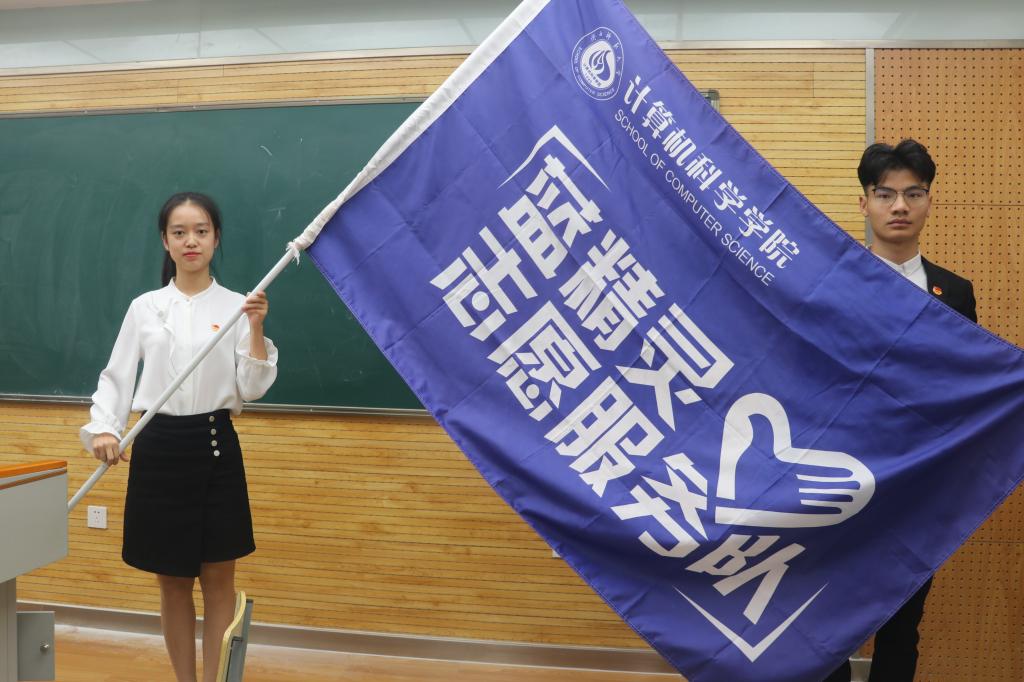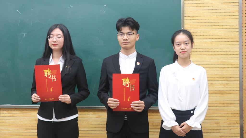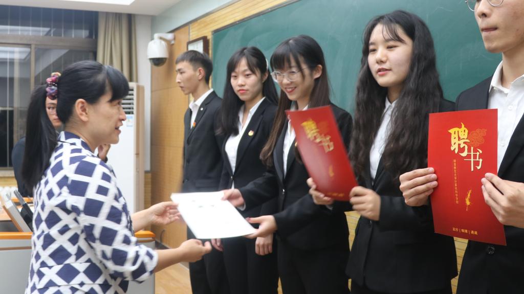 会上,安琪宣读了《2019-2020学年万象城娱乐awc线路学生组织干部任职决定》,陈慧洁、宋澳华任院团委副书记,王越任院学生会主席,张晓燕、李嘉琪、赵凯、加尼别克·加生、张铖歆任院学生会副主席,郭琳任院新闻中心主任,曹宇宁、李雨晨任院新闻中心副主任,李艳任计算机科学协会主席,王静雯、高令艺任计算机科学协会副主席,卢臻玄任蓝精灵志愿服务队队长,于振波、王正平任蓝精灵志愿服务队副队长。袁冰、崔瑜璠还分别为学生会、新闻中心、计算机科学协会和蓝精灵志愿服务队授旗。