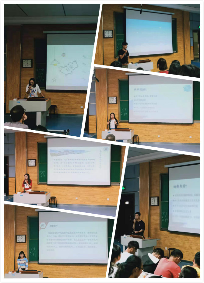 随后,万象城官网学生会、院团委、新闻中心、蓝精灵志愿服务队、计算机科学协会的学长学姐进行了团队纳新的宣讲,为万象城官网多个部门团队纳入2018级的新鲜血液,期望2018级同学可以多多参与校园活动,为万象城官网的学生活动献力献策。