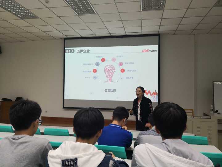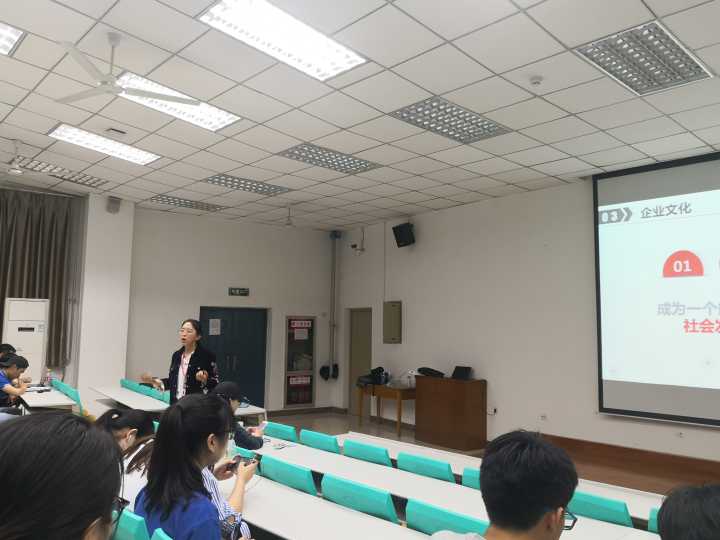 首先,张老师根据个人多年从业经验及对企业招聘的调查研究总结出了企业对求职者的软素质要求,邀请同学们根据这些要求对自己的大学生活进行分析,从而使得同学们对自身能力有一个比较清晰的认识。张老师指出,在招聘面试时,面试官会考察求职者的专业技能及胜任能力,这就要求同学们有较为清晰的自我认知,分析自身能力劣势及优势。张老师强调,正确地选择行业对于求职者来说至关重要,同学们应该选择前景广阔、发展迅速的行业,再结合企业规模及前景、模式创新等因素选择求职企业。其次,张老师向同学们讲解了企业的类型、各类型企业在招聘时考虑的因素,告诉同学们要更好地利用“应届生”的身份。随后,张老师以企业为例,告诉同学们在选择企业时要合理参考企业文化。最后,张老师还向同学们普及了一些职场礼仪和同学们在求职时应该了解的方面,例如考勤制度、保险缴纳办法等。