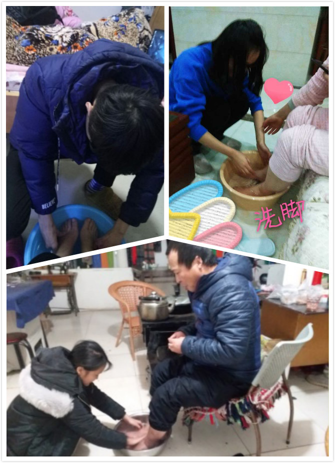 知孝而行孝。“六个一”活动便要求子女们为父母做一道菜、谈一次心、写一张贺卡、洗一次脚、干一些家务、逛一次街等,以实际行动感谢父母。这些事看似微小,却是最能触动父母心弦的。即便子女厨艺不佳,但当给父母呈上自己亲自做的菜肴时,他们也是喜上眉梢、欣喜良久。2018级计科二班王倩表示:“一顿简简单单的饭食,从洗菜到切菜再到下锅,乃至上桌,只需要半个小时,但是,我们这么多年的成长却是母亲用半生的半个小时换来的,这半个小时承载了母亲和父亲半生的辛劳。如今,这简单一食,且表一份孝心吧!”2018级计类二班黄家磊也向同学分享道,“给妈妈洗了一次脚,虽然手忙脚乱,但是妈妈仍然很开心,这么大了确实是第一次为妈妈洗脚,感觉妈妈不像印象中那么高大,原来她是那么的瘦小,脚丫也不大,希望以后可以为妈妈做更多。”